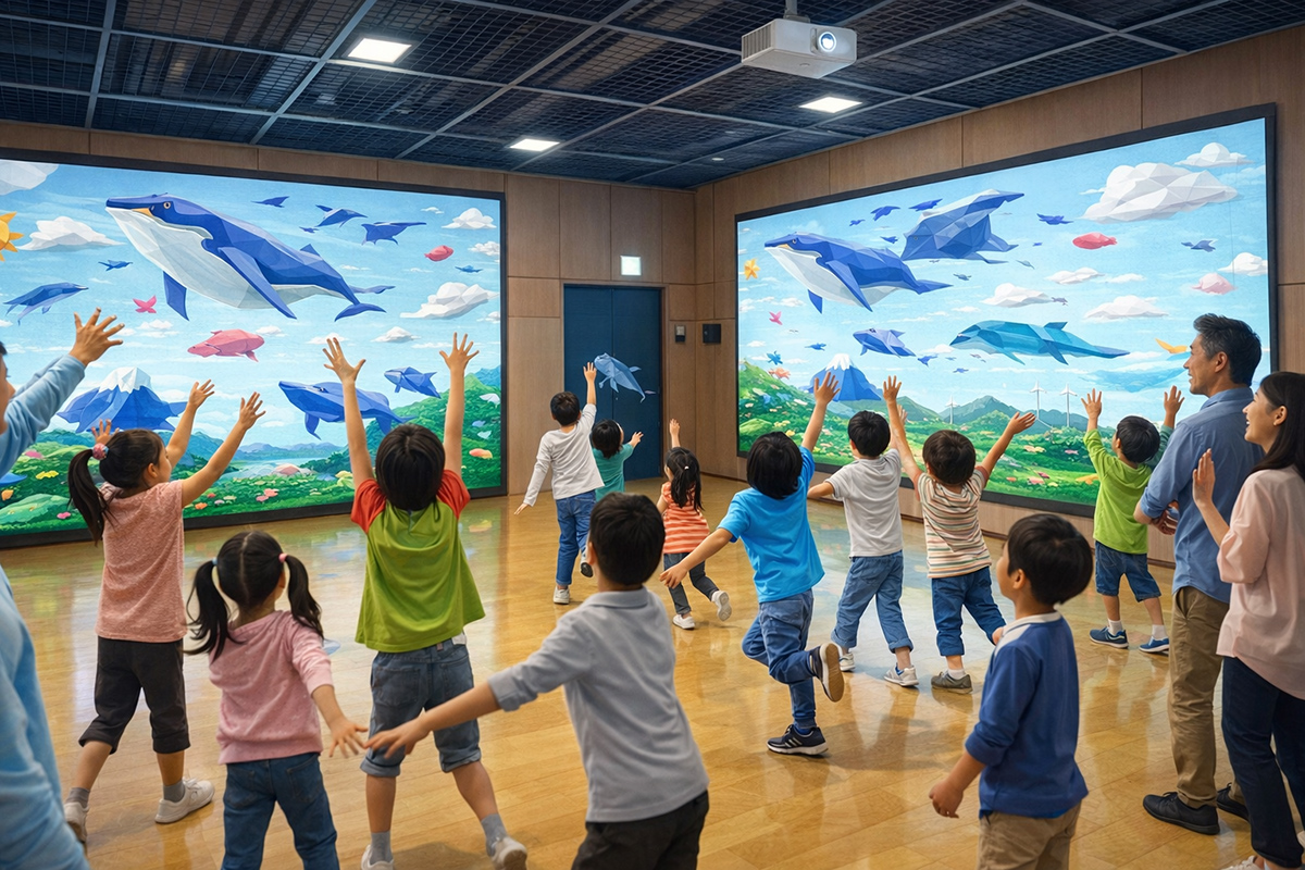 「デジリハ」は、リハビリ・療育・教育の現場で使えるデジタルツールです。画面の中の果物をつかんだり、空を泳ぐクジラと遊んだりするなど、ゲーム感覚で体を動かすことができるのが特徴です。障がいの有無に関わらず、子どもから大人まで楽しみながら体を動かせる体験として注目されています。