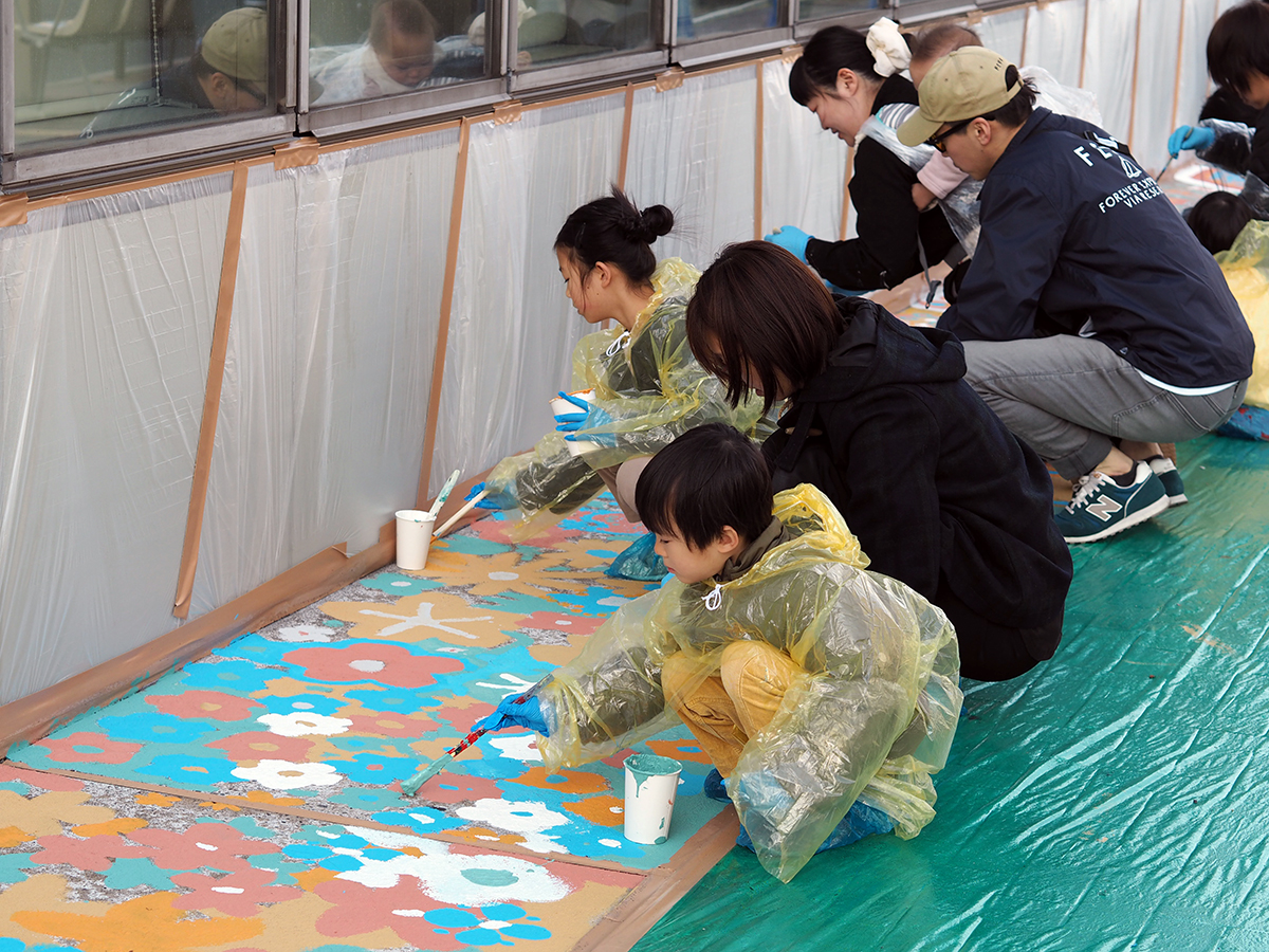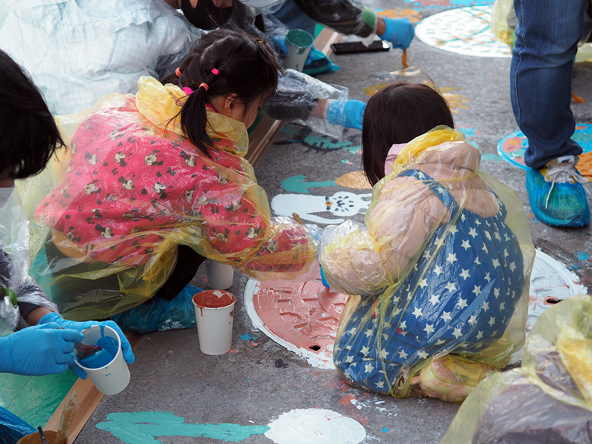 小倉北区役所前で「みんなのみらいのみちプロジェクト」 区民らが“花”をテーマに路面をペイント